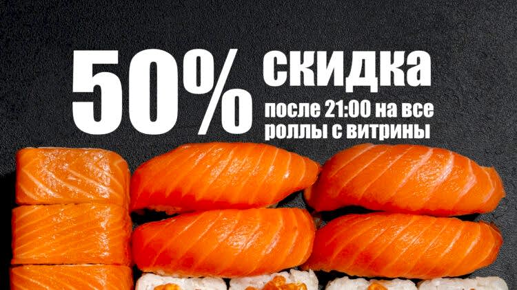 🌙 После 21:00 - роллы по половинке цены. Устали. Есть нечего. Готовить неохота. И тут вы вспоминаете: в «Суши Ням» после девяти - скидка 50% на ВСЕ роллы с витрины. Филадельфия? Есть. С угрём? С охлаждённым лососем? Без проблем. Просто заходите - выбираете, что хотите, и платите вдвое меньше. Без промокодов. Без условий. Просто вкусный вечер по цене «ну надо брать». 📍 Где? В «Суши Ням». 🕘 Когда? После 21:00, каждый день. 💬 Да, даже сегодня. Успевайте - самые вкусные не ждут долго.