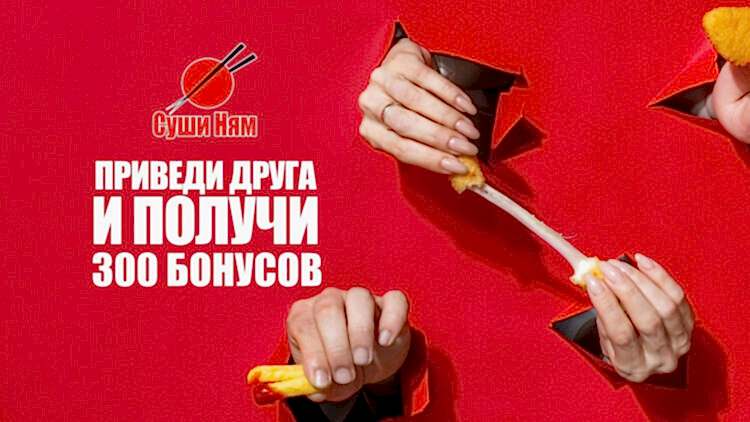 👫 Хочешь бесплатно пополнить кошелёк? 😏 Теперь легко и вкусно! Приведи друга, поделившись ссылкой или промокодом из своего личного кабинета, и получи сразу +300 бонусных ₸ на следующий день после первого заказа друга. 🎊 Это отличный повод угостить друзей суши и заодно заработать на вкусный ужин самому! Хватайте друзей, делитесь любовью к еде и собирайте бонусы вместе! 🍣💸